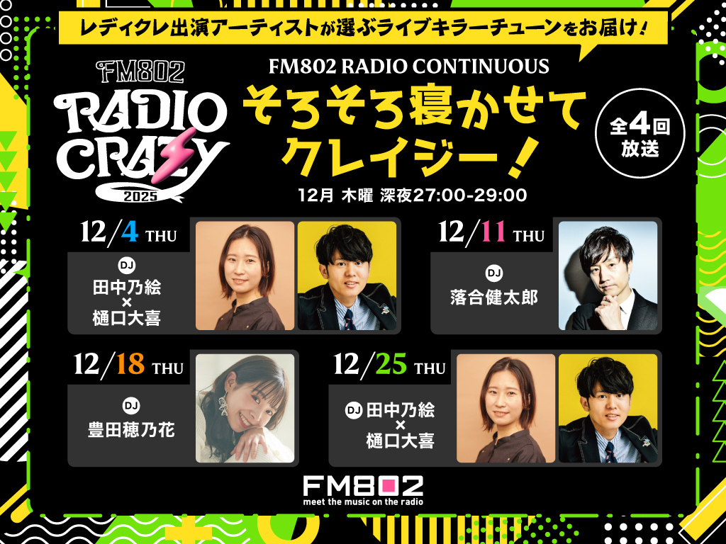 [番組名] 「FM802 RADIO CONTINUOUS そろそろ寝かせてクレイジー!」